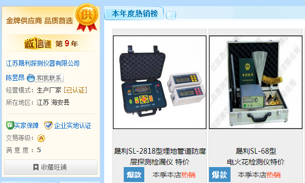 江蘇晟利探測儀器有限公司經過阿里巴巴官方就資質、服務、產品等多方面嚴格審核,2014年榮獲阿里巴巴“金牌供應商”稱號。再次證明了我公司在行業內的領導品牌地位,同時也說明我公司產品質量和服務得到了業內和廣大消費者的認可。